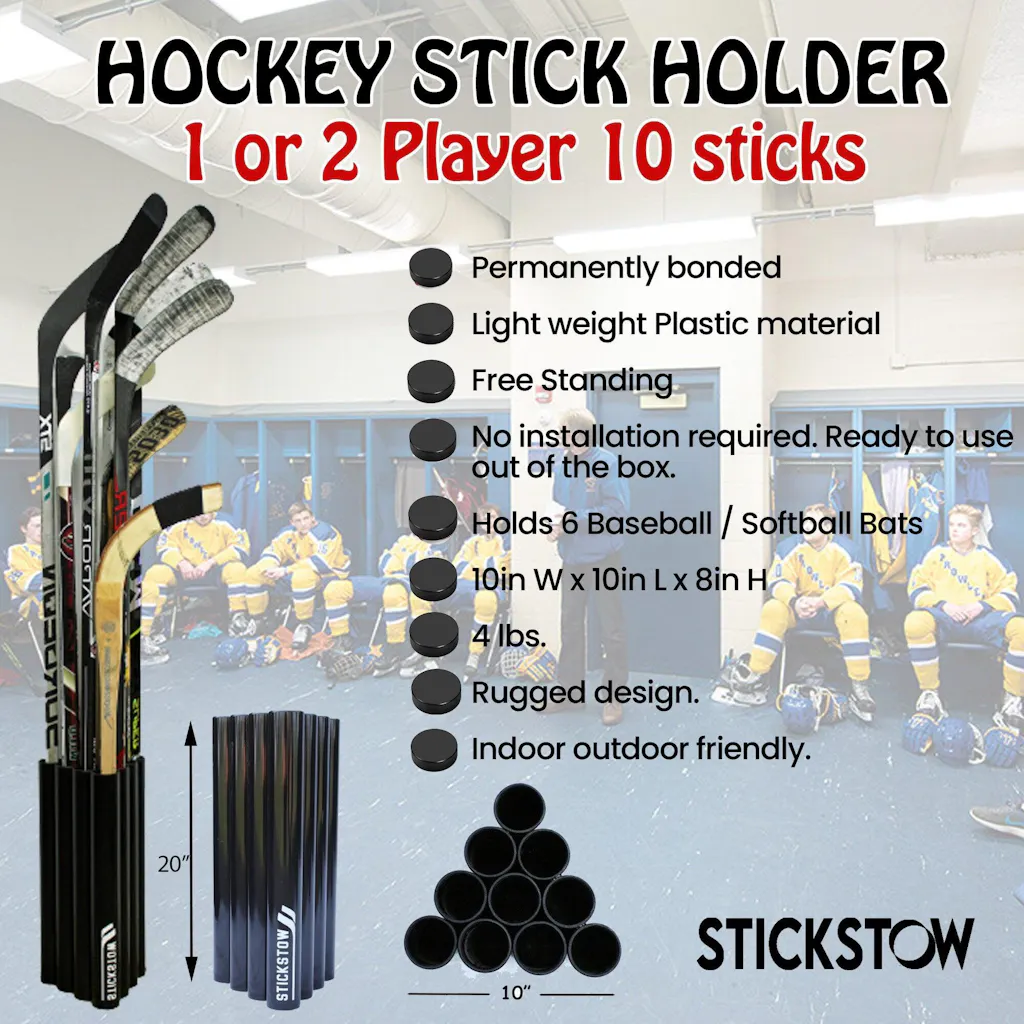 Meet the Stickstow® #10—your go-to compact hockey stick holder built for 1–2 players. With 10 sturdy ABS tubes, it keeps your hockey sticks, lacrosse sticks, bandy sticks, or even tennis rackets organized and ready. Perfect for players who want their gear under control without taking up half the garage.